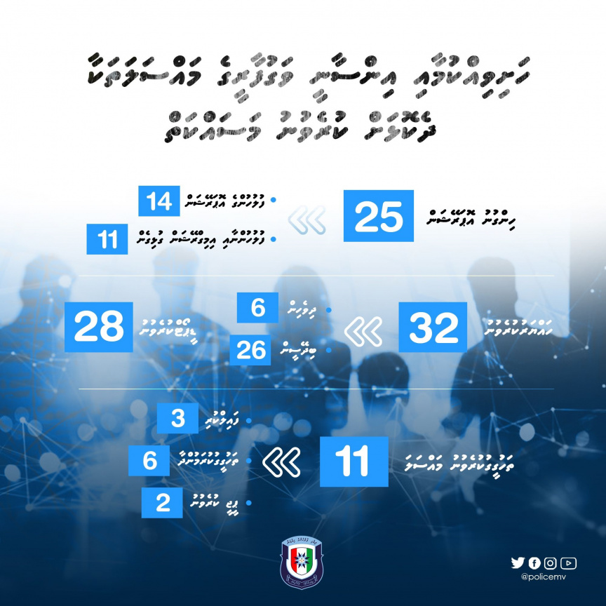 ފުލުހުން އާއްމުކުރި ތަފާސްހިސާބުތަކަށް ބަލާއިރު، ހަށިވިއްކުމާއި އިންސާނީ ވަގުފާރިއާ ދެކޮޅަށް ފާއިތުވި އަހަރު 25 އޮޕަރޭޝަނެއް ހިންގާފައިވެއެވެ. އޭގެ ތެރެއިން 14 އޮޕަރޭޝަނަކީ އިންޓެލިޖެންސް މައުލޫމާތަށް ބިނާކޮށް ފުލުހުން ކުރިއަށް ގެންދިޔަ އޮޕަރޭޝަންތަކެކެވެ.