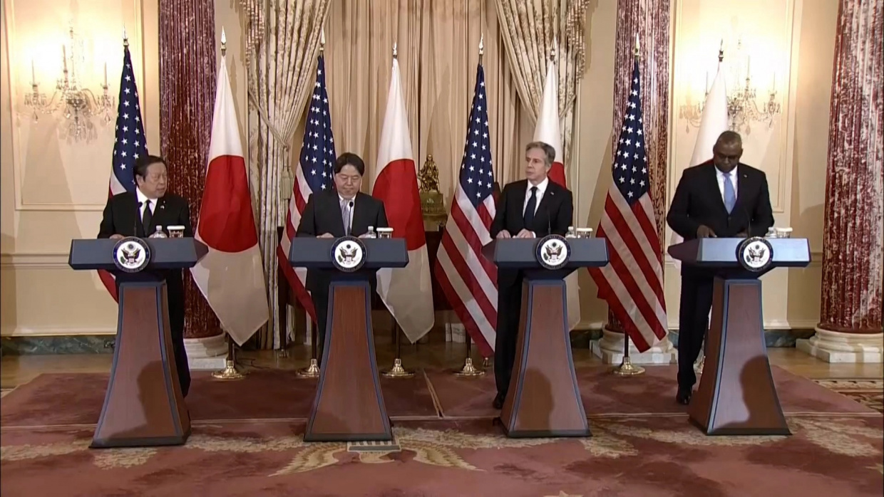 ވޮޝިންޓަން (14 ޖަނަވަރީ 2023): އެމެރިކާ އާއި ޖަޕާނުގެ ޚާރިޖީ ވަޒީރުންނާއި ދިފާއީ ވަޒީރުން، ވޮޝިންޓަންގައި ބައްދަލުކުރައްވައި މުހިއްމު މަޝްވަރާތަކެއް ކުރެއްވުމަށްފަހު ދެގައުމުން ސްޓްރެޓީޖިކް ގުޅުންތަކެއް ގާއިމްކުރިކަން ހާމަކޮށް ބަޔާނެއް ނެރެފިއެވެ.
