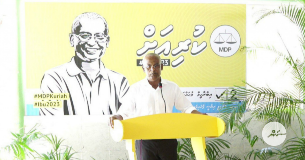 "އަޅުގަނޑުމެން މިއަދު ވިސްނަންވީ މި ހިންގާ މަޝްރޫތައް އަނެއްކާ ވެސް މެދުކަނޑައިލައި މަގުމައްޗަށް ނިކުންނާނީތޯ. ނޫނިއްޔާ މި ފަށައިފައި ހުރި މަސައްކަތްތަކަށް، ކުރަން ހުރި މަސައްކަތްތަކަށް ފުރުސަތު ލިބޭ ގޮތަށް ކުރިއަށް އޮތް ރިޔާސީ އިންތިޚާބަށް އަޅުގަނޑުމެން ދާނީތޯ،" ރައީސް ވިދާޅުވިއެވެ.