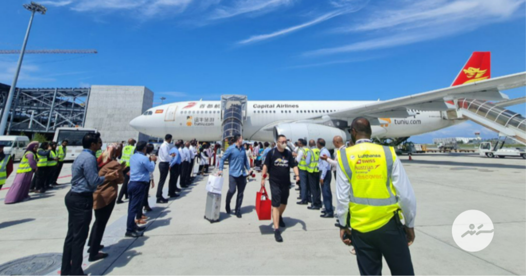 ޗައިނާ މާކެޓްގެ ދަތުރުތައް ރާއްޖެއަށް ފެށުމުގެ ގޮތުން ރާއްޖެއައި ބެއިޖިން ކެޕިޓަލް އެއާލައިންސް --- ސަން ފޮޓޯ/ މުހައްމަދު ޝާތިއު އަބްދުﷲ