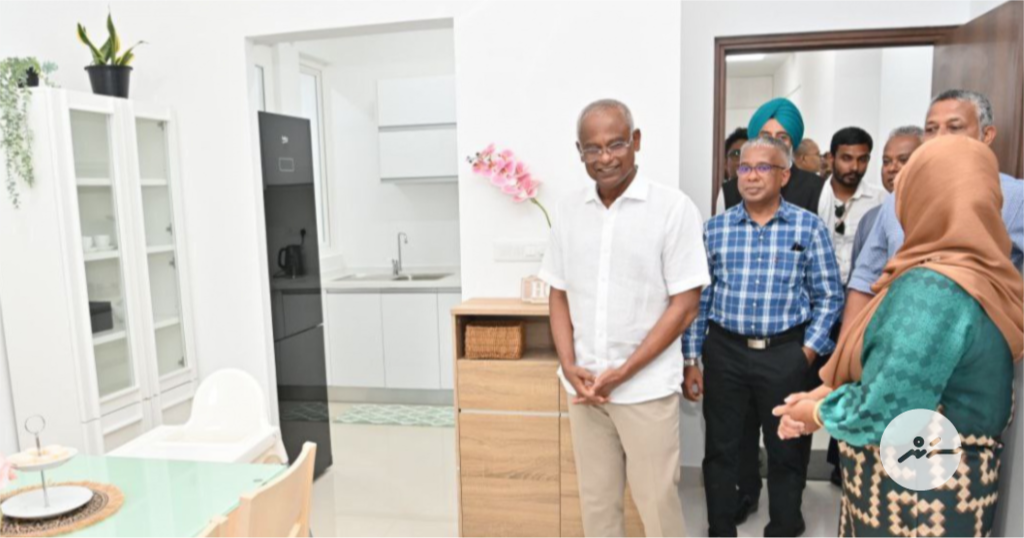 އެތަނަށް ވަޑައިގެން، އެމަނިކުފާނު ވަނީ ފްލެޓުތަކުގެ މޮޑެލް އެޕާޓްމަންޓަކަށް ވަޑައިގެން، ނިމިފައި ހުންނަ އެޕާޓްމަންޓެއް ހުންނާނެ ގޮތް ބައްލަވާލައްވާފައެވެ.