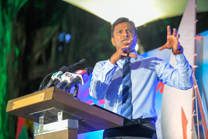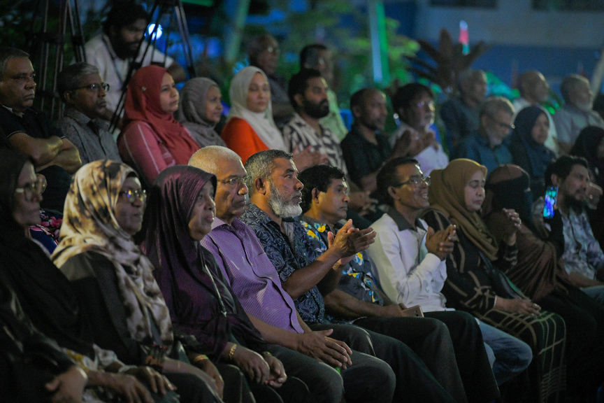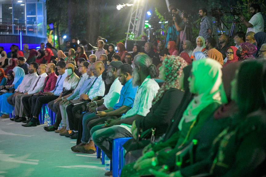 އުމަރު ނަސީރުގެ ރިޔާސީ ކެމްޕޭން އިފްތިތާހު ކުރުމަށް ރޭ، ސަލްޓަން ޕާކުގައި ބޭއްވި ޖަލްސާގެ ތެރެއިން--- ސަން ފޮޓޯ/ މުހައްމަދު ޝާތިއު އަބްދުﷲ