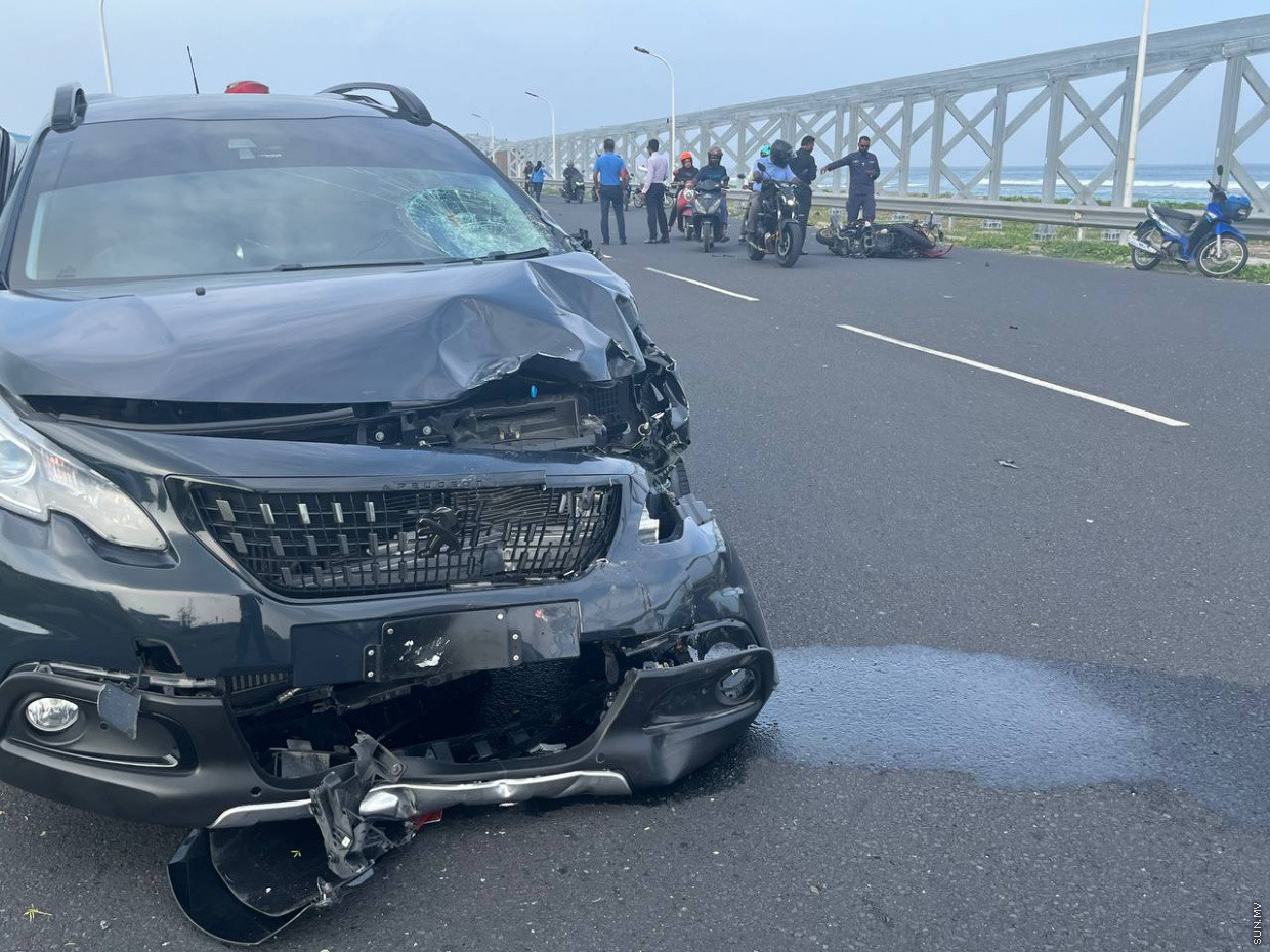 އިއްޔެ ހިނގި އެ އެކްސިޑެންޓުގައި ސައިކަލު ބޭނުން ނުކުރެވޭ ވަރަށް ވަނީ ހަލާކުވެފައެވެ. އަދި ކާރުގެ ކުރީ ބައި ވެސް ވަނީ ވަރަށް ބޮޑަށް ހަލާކުވެފައެވެ.