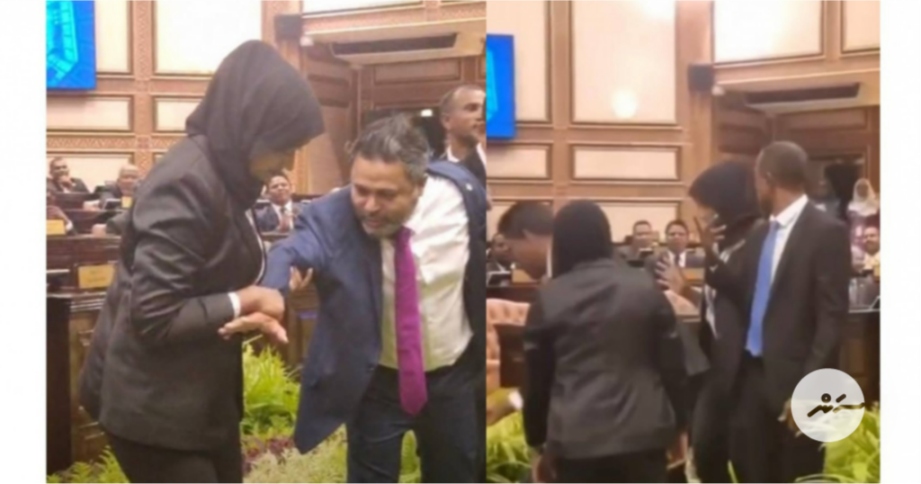 ގަރާރުގައި ބުނީ އެ ޖަލްސާގައި ފިރިހެން މެމްބަރުންގެ ގައިކޮޅުގައި އަންހެން ސެކިއުރިޓީ އޮފިސަރުން އަތްލާ، ދަމާކޫއްތާ ހަދަމުން ދިޔަ މަންޒަރުތައް އާންމުވެގެން ދިޔަ ކަމަށެވެ. އަދި އެ މަންޒަރުތައް އާންމު ވުމާއެކު އެ މަންޒަރުތަކަކީ މުޖުތަމައުއިން ބަލައިގަންނަ އާންމު މިންގަނޑުތަކާ ޚިލާފު އަމަލެއްގެ ގޮތުގައި ސިފަކުރެވިގެން ގޮސްފައިވާ ކަމަށް ގަރާރުގައިވެއެވެ.