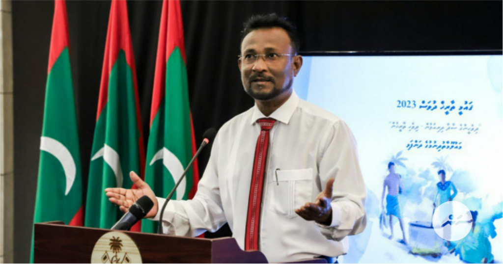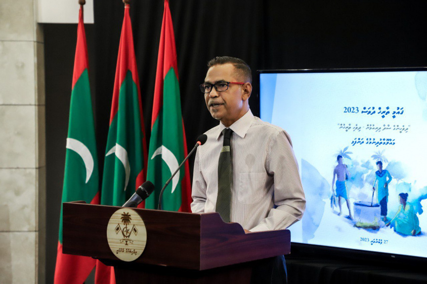 މުހައްމަދު އާދަމް ސަލީމް ޚަފުލާގެ ބައިވެރިންނާ ވާހަކަ ދައްކަވަނީ --- ފޮޓޯ/ ދިވެހި ބަހުގެ އެކަޑަމީ