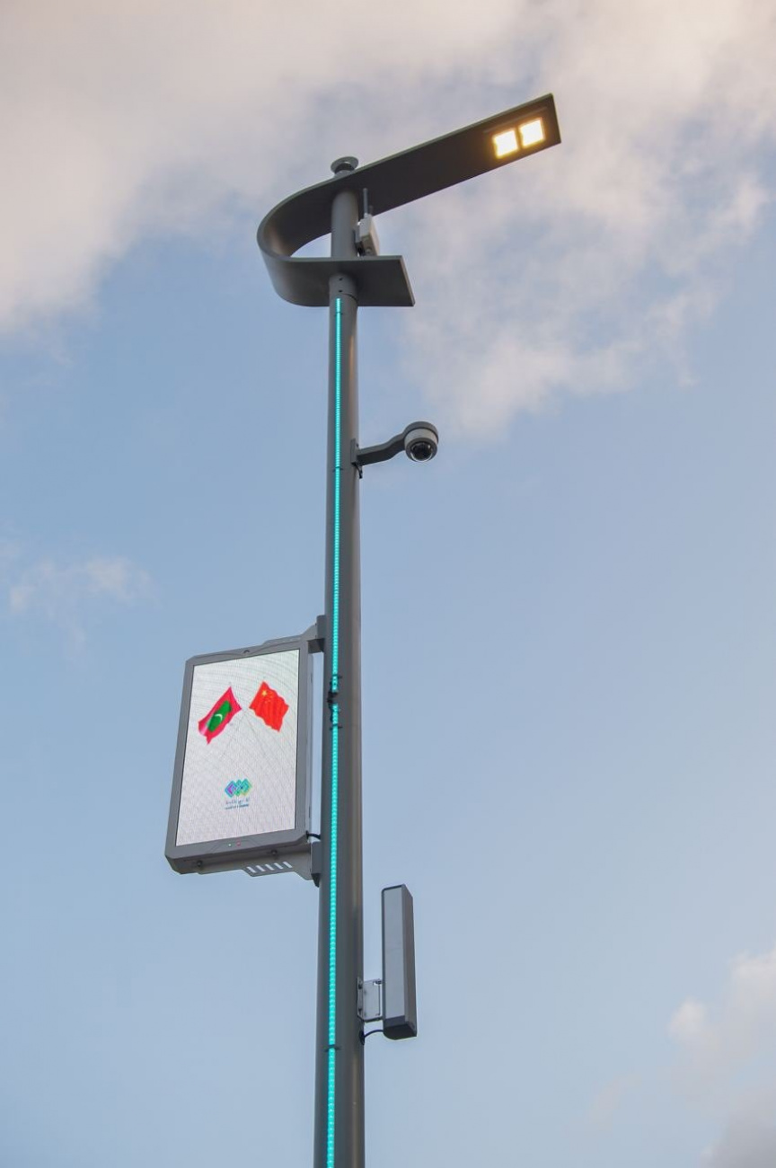"ސްމާރޓް ސްޓްރީޓް ލައިޓް"ގެ ތަފްސީލް ދެއްވަމުން މޭޔަރު ވިދާޅުވީ މިއީ ފްރީ ވައިފައި، ޑިޖިޓަލް ލެޑް ސްކްރީން، ސްޕީކާ ސިސްޓަމް، އަދި ސީސީޓީވީ ކެމެރާގެ އިތުރުން މޫސުމަށް އަންނަ ބަދަލުތައް ދެނެގަތުމަށް ފަސޭހަވާނެ ހެން އެންވަރެންމަންޓް ސެންސަރު ހަރުކުރެވިފައިވާ ޕޯލްތަކެއް ކަމަށެވެ.