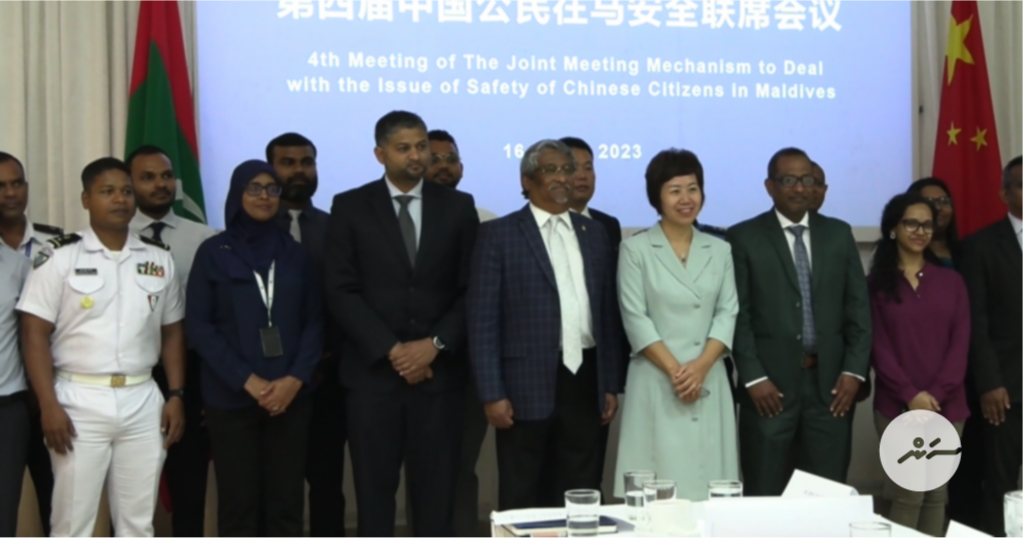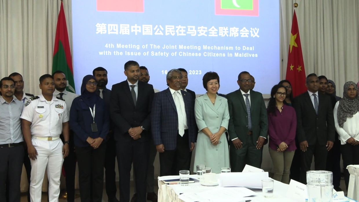 ރާއްޖޭގައި އުޅޭ ޗައިނާ ފަތުރުވެރިންނާއި ރައްޔިތުންގެ ސަލަމާތާއި ރައްކާތެރިކަން ކަށަވަރު ކުރުމުގެ ގޮތުން ރާއްޖޭގެ އިދާރާތަކާއި ރާއްޖޭގައި ހުންނަ ޗައިނާ އެމްބަސީ ގުޅިގެން ކުރެވޭނެ ކަންތައްތައް ދެނެގަތުމަށް ބޭއްވި ހަތަރުވަނަ މަޝްވަރާ ބައްދަލުވުން ބާއްވައިފިއެވެ.