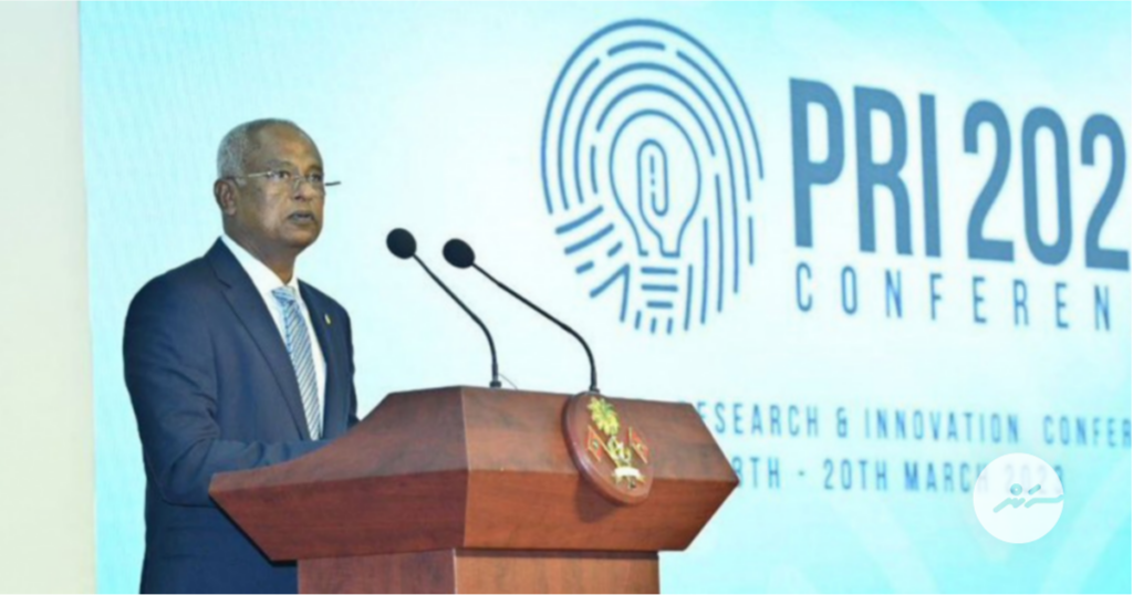 ޕޮލިސް ރިސާޗް އެންޑް އިނޮވޭޝަން ކޮންފަރެންސް ފެށުމުގެ ރަސްމިއްޔާތުގައި ރައީސް އިބްރާހިމް މުހައްމަދު ޞާލިހް ވާހަކަފުޅު ދައްކަވަނީ -- ފޮޓޯ/ ރައީސް އޮފީސް