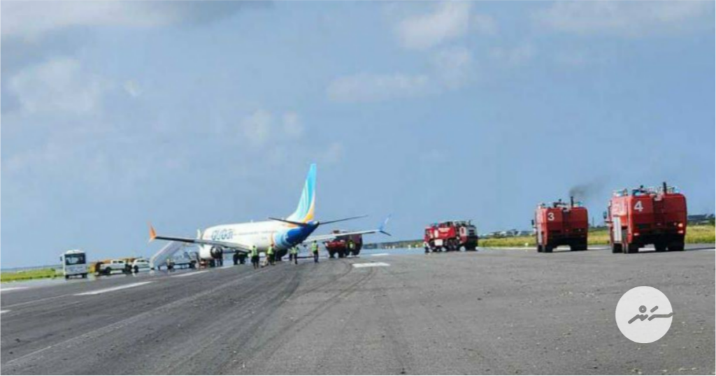 މިއަދު މެންދުރުފަހު 2:18 ގައި ދުބާއީ އިން ރާއްޖެ އައި ފްލައި ދުބާއީގެ ފްލައިޓް ވީއައިއޭއަށް ލޭންޑް ކުރުމުގެ ތެރޭގައި ވަނީ ޓަޔަރެއް ފަޅައިގެން ގޮސް ރަންވޭ މަތީގައި ތާށިވެފައެވެ.