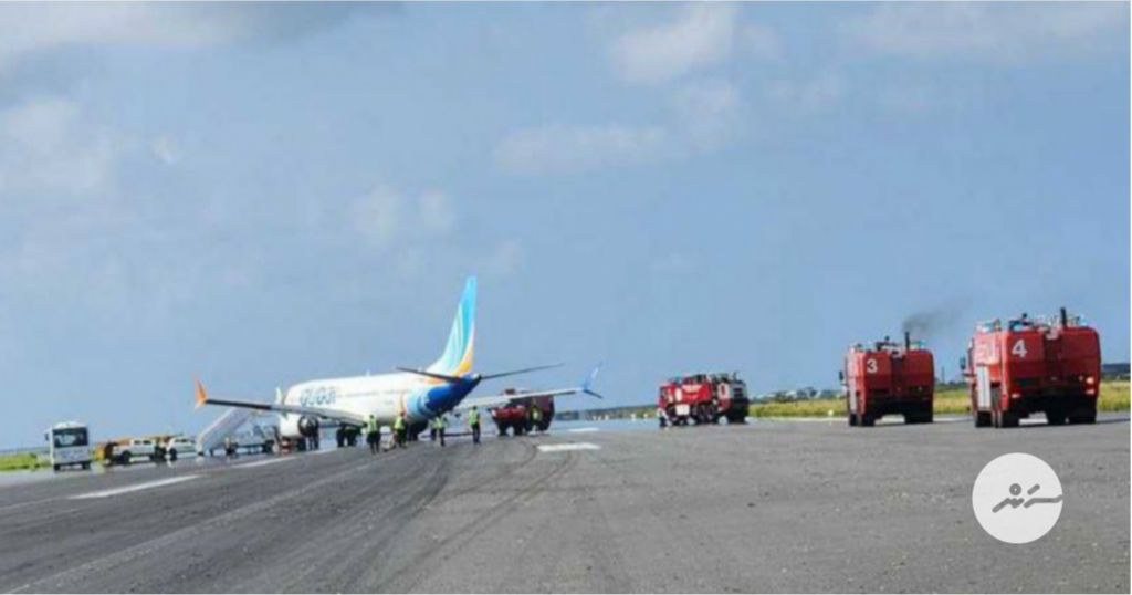ވައިއޭގެ ރަންވޭ މަތީގައި ފްލައި ދުބާއީގެ ފްލައިޓެއް ޓަޔަރު ފަޅައިގެން ގޮސްފައި---