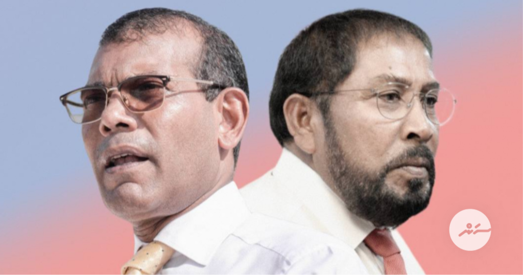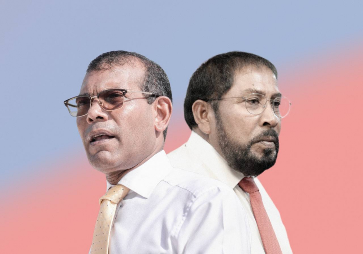 ޖުމްހޫރީ ޕާޓީގެ ލީޑަރު ގާސިމް އިބްރާޙިމް އަދި އެމްޑީޕީގެ ރައީސް މުހައްމަދު ނަޝީދު -- ފޮޓޯ - އަވަސް