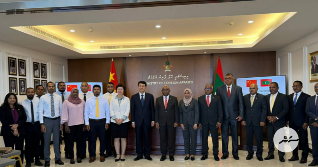 އެމްއޯޔޫއެއްގައި ސޮއިކޮށްފައިވަނީ ފޮރިން މިނިސްޓްރީއާއި ޗައިނާ އިންޓަނޭޝަނަލް ޑިވެލޮޕްމަންޓް ކޯޕަރޭޝަން އެޖެންސީއާ ދެމެދުގައެވެ.