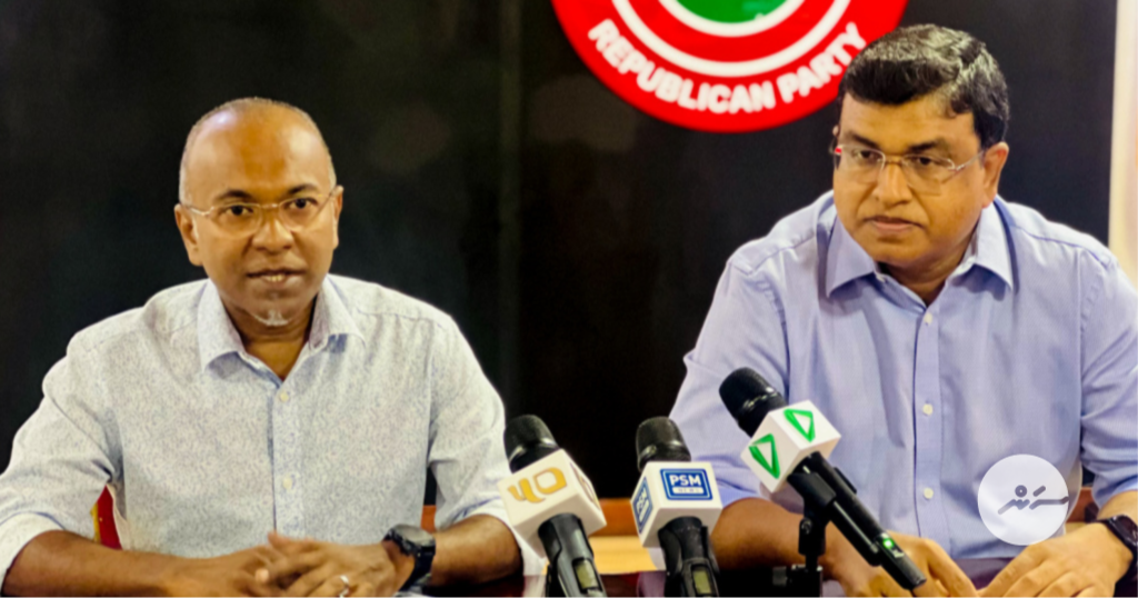 ރައީސް ނަޝީދުގެ ފެކްޝަނުން ޖުމްހޫރީ ޕާޓީއާއެކު މިރޭ ކުނޫޒުގައި ބޭއްވި ބައްދަލުވުން--- ސަން ފޮޓޯ/ މުޙައްމަދު ޝާތިއު