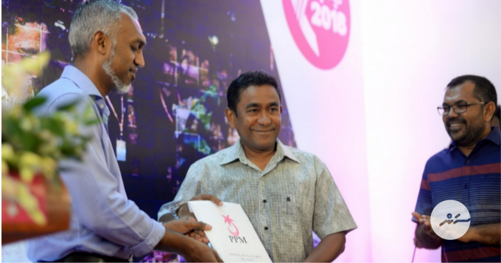 އެ ޕާޓީން ވަނީ ކުރީގެ ރައީސް އަބްދުﷲ ޔާމީން އަބްދުލްގައްޔޫމަށް އެ ޕާޓީގެ ރިޔާސީ ޓިކެޓު ދީފައެވެ. އެކަމަކު، މިދިޔަ ޑިސެމްބަރު މަހުގެ 25ވަނަ ދުވަހު ކްރިމިނަލް ކޯޓުން އެ މަނިކުފާނަށް އިއްވި 11 އަހަރުގެ ޖަލު ހުކުމާ އެކު މި އަހަރުގެ ރިޔާސީ އިންތިޚާބުގައި އެ މަނިކުފާނަށް ވާދަކުރެއްވިދާނެ ތޯ ވަނީ ސުވާލު އުފެދިފައެވެ.