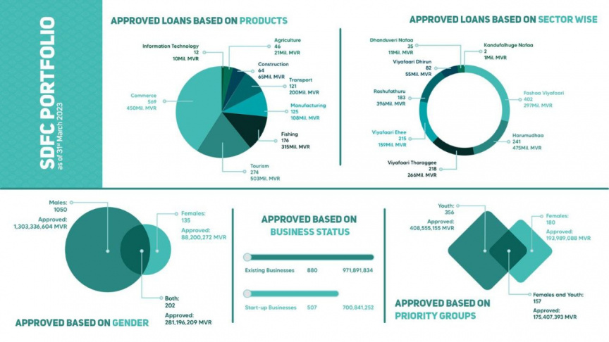 މިދިޔަ 2020ވަނަ އަހަރުގެ ނޮވެމްބަރު މަހު ކަސްޓަމާ ސާވިސް ޕޯޓަލް ލޯންޗް ކުރުމާ އެކު މުޅިން އޮންލައިންކޮށް ލޯނަށް އެދި ހުށަހަޅާ ދިވެހިރާއްޖޭގެ ފުރަތަމަ މާލީ އިދާރާއަށް އެސްޑީއެފްސީ ވެގެންދިޔުމާ އެކު، 2023ވަނަ އަހަރުގެ މާރިޗު މަހުގެ ނިޔަލަށް އެ ކޯޕަރޭޝަނުން 1387 ލޯނު (1.67 ބިލިއަން ރުފިޔާ) އެޕްރޫވް ކޮށްފައިވެއެވެ.
