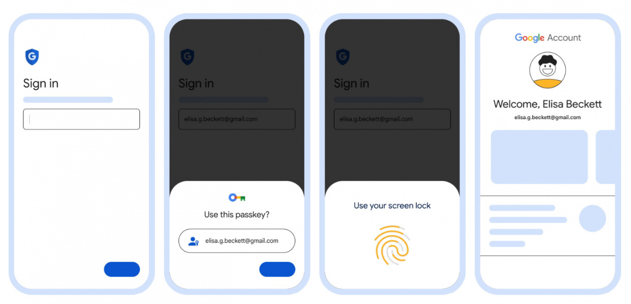އަދި ބޮޑެތި ހުރިހާ ޕްލެޓްފޯމެއްގައި ވެސް ގޫގުލް އެކައުންޓްތަކުގައި ޕާސްކީ ބޭނުން ކުރެވޭ ގޮތް ހަދާނެ ކަމަށް އެ ކުންފުނިން ބުނެއެވެ. މި ޕާސްކީތަކަކީ ޕާސްވޯޑާއި ދެ ސްޓެޕް ވެރިފިކޭޝަންގެ އިތުރުން ސައިން އިން ކުރުމަށް ބޭނުން ކުރެވޭނެ އިތުރު އޮޕްޝަނަކަށް ވާނެއެވެ.