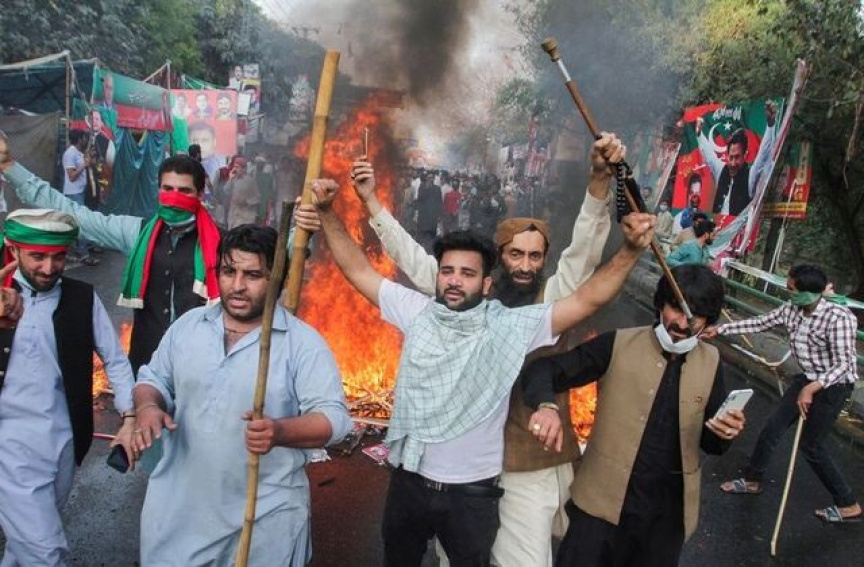 އިމްރާންޚާންގެ ދިފާއުގައި ޕާކިސްތާނުގެ ސަރުކާރާ ދެކޮޅަށް މަގުތަކަށް ނުކުމެ އިހްތިޖާޖު ކުރަމުން ގެންދަނީ ހަމައެކަނި އޭނާގެ ޕާޓީކަމަށްވާ ތަހްރީކޭ އިންސާފު ޕާޓީއަށް ނިސްބަތްވާ މީހުން އެކަންޏެއް ނޫނެވެ. ޕާކިސްތާނުގެ ވަކި ޕާޓީއަކަށް ނިސްބަތްނުވާ އެތައް ހާސްބަޔަކު ގެންދަނީ އިމްރާންޚާން ހައްޔަރުކުރުމަކީ ރަތްރޮނގުކަން ސަރުކާރަށް ހަނދާންކޮށްދީ އޭނާގެ ދިފާއުގައި ސަރުކާރާއި ސިފައިންނާ ދެކޮޅަށް އަޑުއުފުލަމުންނެވެ.