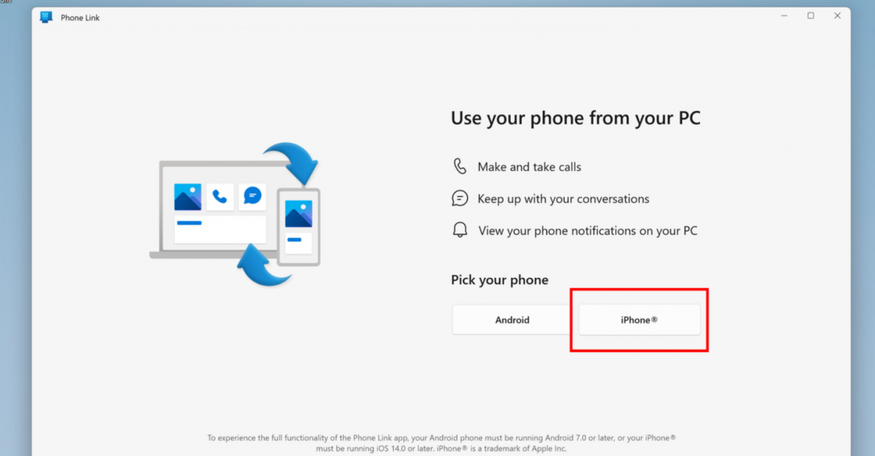 ކޮމްޕިއުޓަރާއި ފޯނާ ލިންކް ކުރުމަށް މައިކްރޯސޮފްޓުން އުފެއްދި ފޯނު ލިންކް މީގެ ކުރިން މަސައްކަތް ކުރީ ހަމައެކަނި އެންޑްރޮއިޑް ފޯނުތަކާ އެކުގައެވެ. ނަމަވެސް މިއަޕްޑޭޓާއެކު އައިފޯނުންވެސް ޕީސީ މެދުވެރިކޮށް ފަސޭހަކަމާއެކު ކަންކަން ކޮށްލެވޭނެއެވެ.