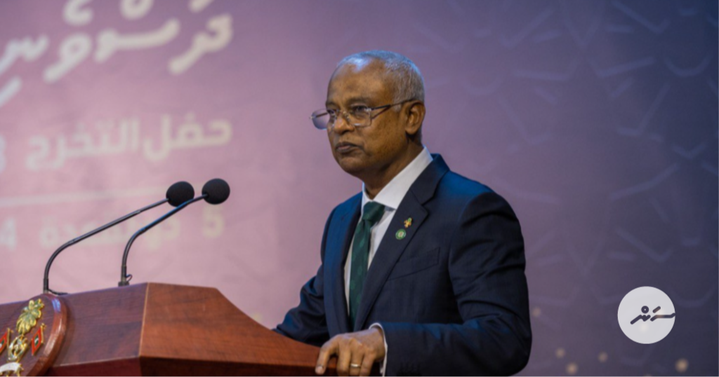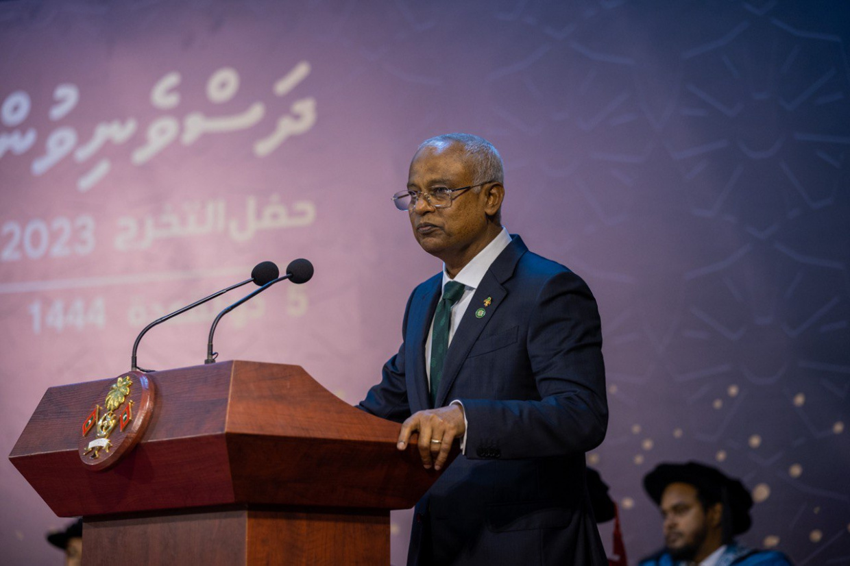 "މި ދެންނެވި މަޤްޞަދު ޙާޞިލުކުރުމުގައި، މި ޔުނިވަރސިޓީއަކީ ވެސް ވަރަށް މުހިންމު ދައުރެއް އަދާކުރާ މުއައްސަސާއެއް. ޚާއްޞަ ގޮތެއްގައި އިސްލާމްދީނުގެ ޞައްޙަ ޢަޤީދާގެ މަތީގައި، ދިވެހި ޒުވާނުން ތަރުބިއްޔަތު ކުރުމުގައި، މި ޔުނިވަރސިޓީން އަންނަނީ ވަރަށް މުހިންމު ދައުރެއް އަދާކުރަމުން. އަދި އަޅުގަނޑުމެންގެ ތެރޭގައި ފެތުރިފައިވާ ހަރުކަށި ފިކުރާ ދެކޮޅަށް، ނޭޝަނަލް ކައުންޓަރ ޓެރަރިޒަމް ސެންޓަރާ އެކު، މި ޔުނިވާސިޓީން ވަރަށް އެދެވޭ މަސައްކަތްތަކެއް ކުރަމުން އަންނަކަން އަޅުގަނޑު އުފަލާއެކު ފާހަގަކުރަން" ރައީސް ވިދާޅުވިއެވެ.