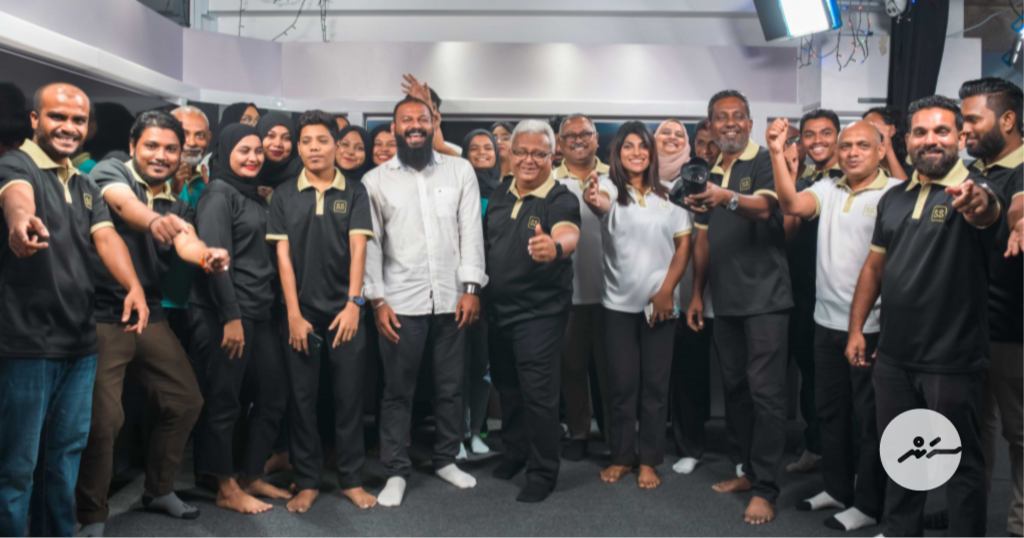 އެސްއެސް ނެޓްގެ ތީމް ލަވައިގެ އޯޑިއޯ ރިލީޒް ކުރުމުގެ ހަފްލާގެ ތެރެއިން އެސްއެސް މީޑިއާގެ ވެރިންނާއި މުވައްޒަފުން-- ސަން ފޮޓޯ: މުޙައްމަދު ޝާތިއު އަބްދުﷲ