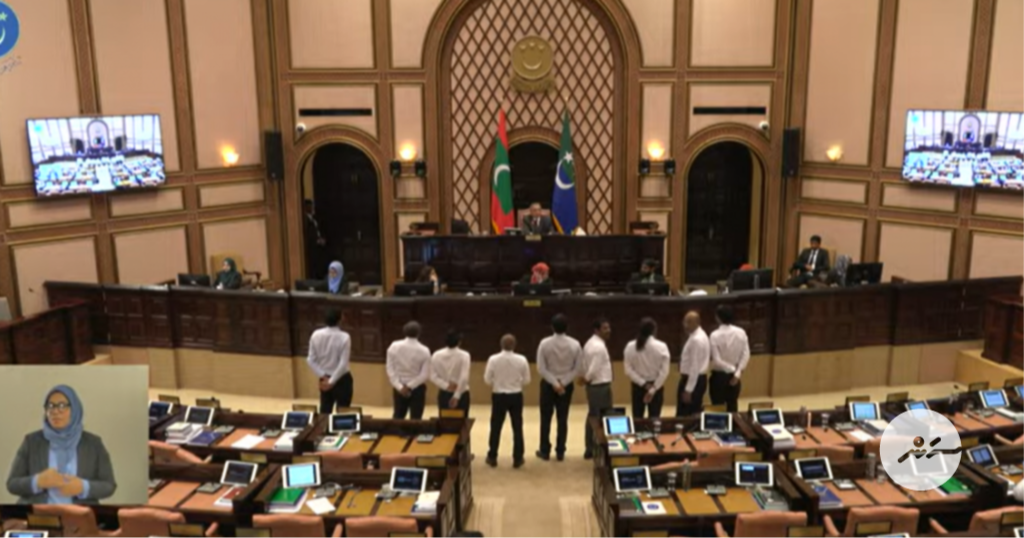 ރައްޔިތުންގެ މަޖިލީހުގެ ކޮމިޓީތައް އަލުން އެކުލަވައިލުމާ ގުޅޭ މައްސަލަ އެޖެންޑާ ކޮށްފައި އޮތީ ގަވާއިދާ ޚިލާފަށް ކަމަށް ބުނެ ސަރުކާރާ ދެކޮޅު މެންބަރުން ތަޅުމުގައި އަޑުގަދަ ކުރުމާ ގުޅިގެން ރިޔާސަތު ހަވާލުކޮށްފައިވާ ވިލުފުށީ ދާއިރާގެ މެންބަރު ހަސަން އަފީފަށް ތަޅުން ކޮންޓްރޯލް ނުވެ މިއަދުގެ ޖަލްސާ ވެސް ނިންމާލައިފިއެވެ.