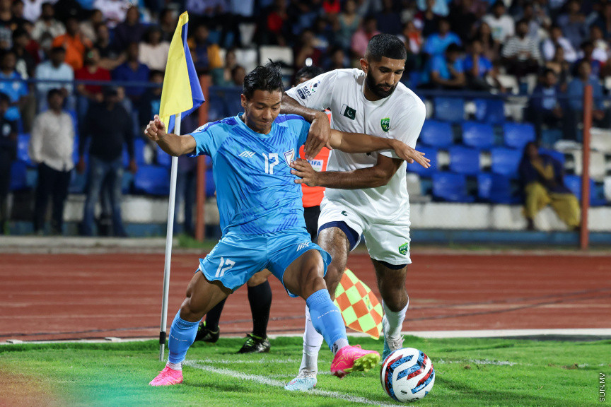 މިރޭގެ މެޗުގެ ފުރަތަމަ 15 މިނެޓުގެ ތެރޭގައި އިންޑިއާ އިން ވަނީ ދެ ގޯލުގެ ލީޑެއް ހޯދައިފައެވެ. މެޗުގެ ދިހަވަނަ މިނެޓުގައި ޕާކިސްތާން ކީޕަރު ސާގިބް ހަނީފަށް ހެދުނު ގޯހެއްގެ ފައިދާ ނަގައި، އިންޑިއާއަށް ލީޑު ހޯދައިދިނީ އެޓީމުގެ ކެޕްޓަން ސުނިލް ޗެތުރީއެވެ. ޕާކިސްތާން ކީޕަރު ސާގިބަކީ ރާއްޖޭގެ ކްލަބު ގްރީން ސްޓްރީޓްސްގެ ގޯލު ބަލަހައްޓަމުންދާ ކީޕަރެވެ.