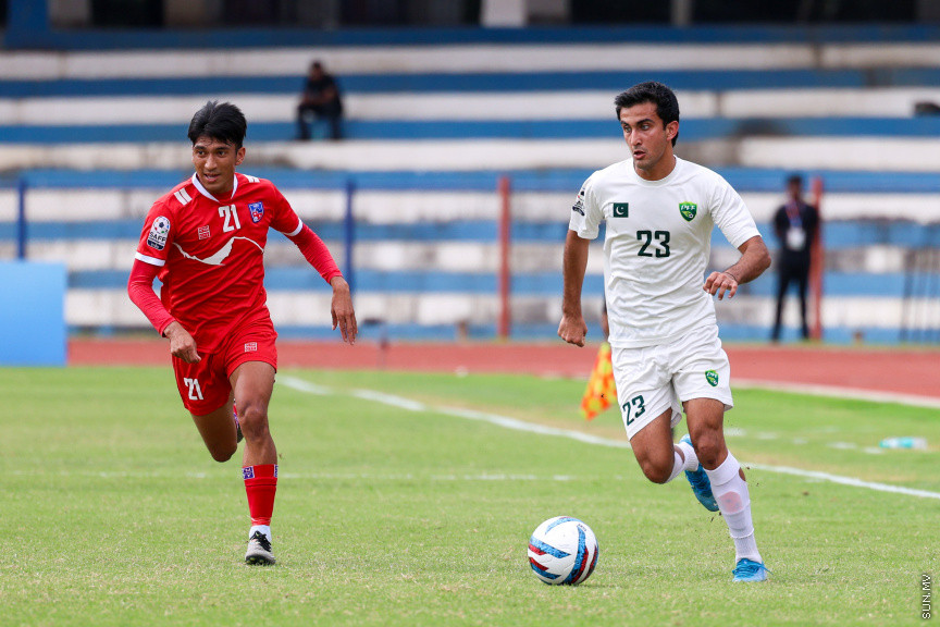 ސާފް ޗެމްޕިއަންޝިޕް 2023 ގައި ނޭޕާލާއި ޕާކިސްތާން ބައްދަލުކުރި މެޗުގެ ތެރެއިން -- ސަން ފޮޓޯ/ އަބްދުﷲ އަބީދު