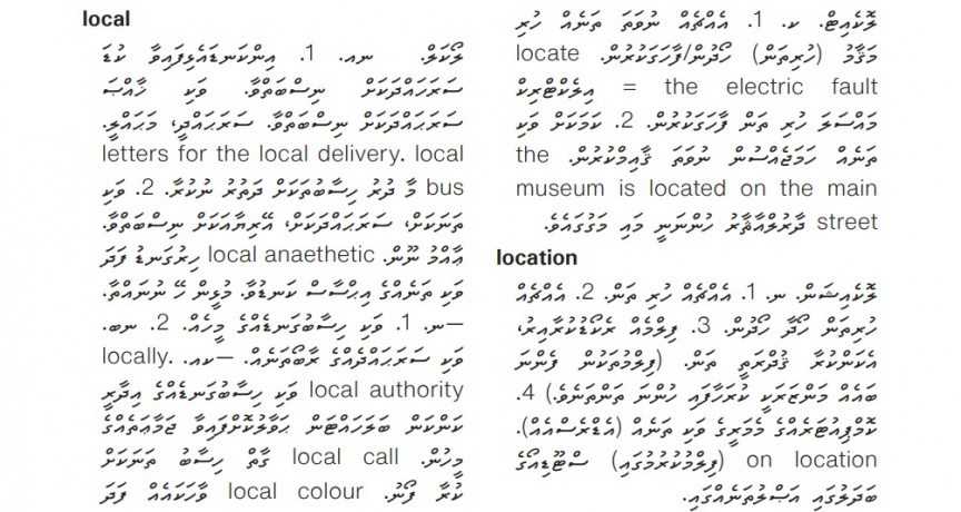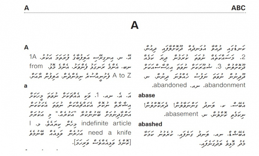 ޑރ ހަސަން ހަމީދު ތަރުޖަމާކުރައްވަމުންދާ އޮކްސްފަޑް ޑިކްޝަނަރީގެ "އޭ" އަކުރުގެ ރަދީފް ގަނޑުގެ ބައެއް---
