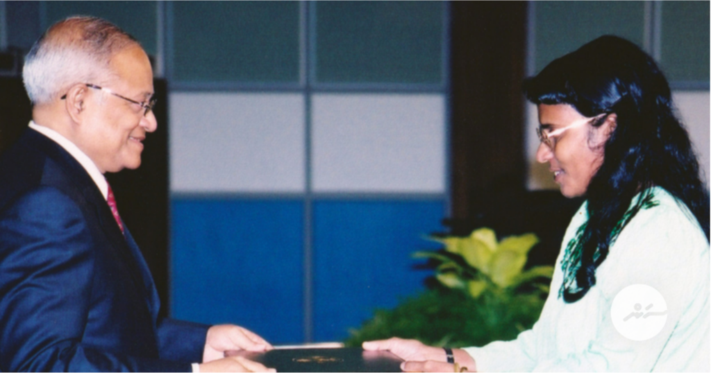 ދިވެހި ޅެންވެރިކަމުގެ ދުނިޔޭގައި ޑޭޒީމަލުގެ ނަމުން މަޝްހޫރުވެވަޑައިގެންނެވި އާމިނަތު ފާއިޒާގެ ދަރިކަނބަލުން ކަމަށްވާ އާމިނަތު ޢައްބާސްއަށް ވަނީ 2002 ވަނަ އަހަރު ދިވެހި އަދަބިއްޔާތަށް ޚިދްމަތްކުރުމުގެ ދާއިރާއިން، ޅެންހެދުމުގެ ރޮނގުން އާންމު ޚިދުމަތުގެ ހިތްވަރު ދިނުމުގެ އިނާމު އަރުވާފައެވެ.