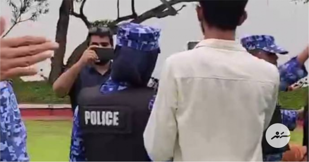 ނޫސް މީޑިއާތަކުގައި ދައުރުވަމުންދާ ވީޑިއޯތަކުން ފެންނަ ގޮތުގައި ސަންގު ޓީވީގެ ކެމެރާމަނަކު، ވީޑިއޯކުރުމަށް ހުރަސް އަޅައި ފުލުހުން ކޮއްޕާ ވައްޓާލާ މަންޒަރު ފެނެއެވެ. އަދި ކެމެރާމަނާއި ޖެހިގެން ހުރި ސަންގު ޓީވީގެ ނޫސްވެރިއަކު ވެސް ވަނީ އެވަގުތު ވެއްޓިފައެވެ.
