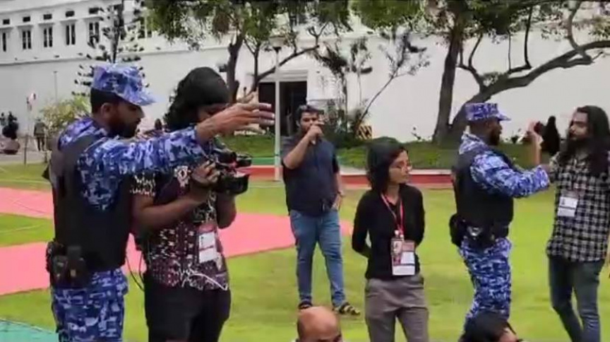 އަދި އެވަގުތު އެ މަންޒަރު ނަގަން އުޅުނު އެހެން މީޑިއާތަކުގެ ނޫސްވެރިންނާއި ކެމެރާމަނުންނަށް ހުރަސްއަޅައި އެ ސަރަޙައްދުން ދުރަށް ފޮނުވާލަން މަސައްކަތްކުރާ މަންޒަރު ވީޑިއޯތަކުން ފެނެއެވެ.