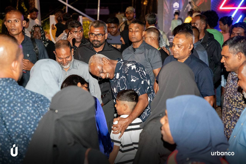 ރައީސް އިބްރާހީމް މުޙައްމަދު ޞާލިޙް، މިނިވަން އުފާ ކާނިވަލުގައި މީހުންނާ ބައްދަލުކުރައްވަނީ -- ފޮޓޯ/ އާބަންކޯ