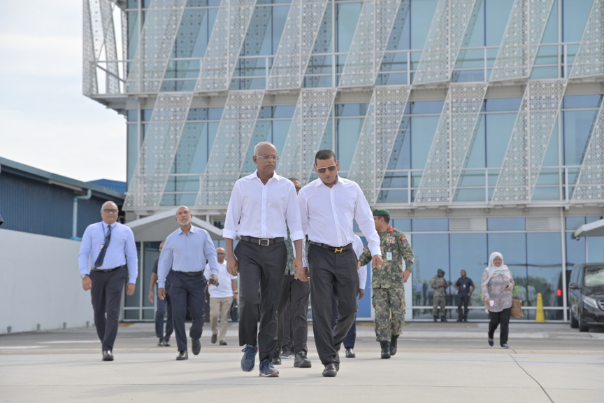 ރައީސް ޞާލިޙް ފުވައްމުލަކަށް ފުރާވަޑައިގަތުމަށް ވެލާނާ އިންޓަނޭޝަނަލް އެއާޕޯޓުގައި --- ފޮޓޯ/ އެމްޑީޕީ