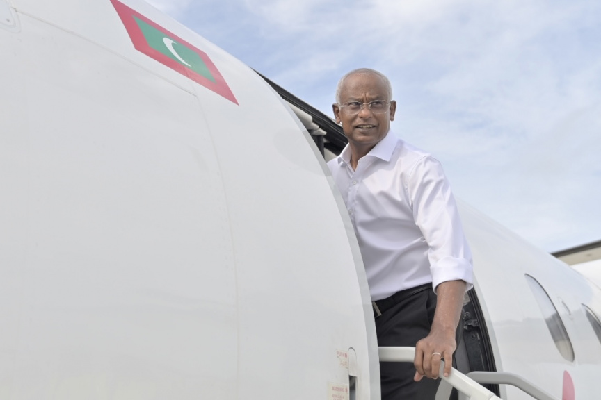 ރައީސް ޞާލިޙް ފުވައްމުލަކަށް ފުރާވަޑައިގަތުމަށް ފްލައިޓަށް އަރާވަޑައިގަންނަވަނީ --- ފޮޓޯ: އެމްޑީޕީ