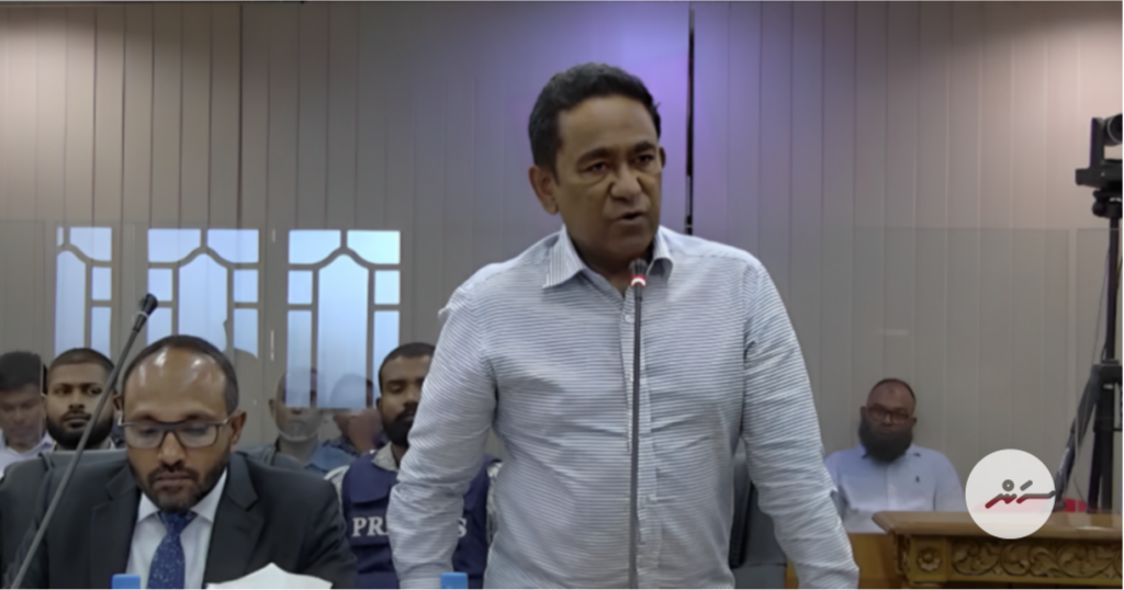 މިއަދު ހައިކޯޓުގައި ކުރިއަށް ދިޔަ އިސްތިއުނާފު އަޑުއެހުމުގައި ކުރީގެ ރައީސް އަބްދުﷲ ޔާމީން އަބްދުލްގައްޔީމް --