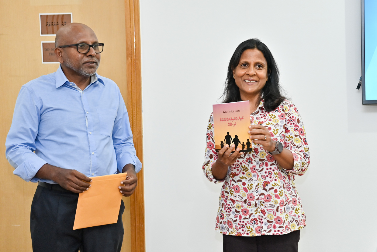 "ކުދިން ތަރުބިއްޔަތުކުރުމަށް ފަހި މަގެއް"ގެ ނަމުގައި ފަޔާޒް ލިޔުއްވި ފޮތް ނެރެދެއްވީ ރައީސުލްޖުމްހޫރިއްޔާގެ އަނބިކނަބަލުން ފަޒްނާ އަހްމަދު --- ފޮޓޯ/ ރައީސް އޮފީސް