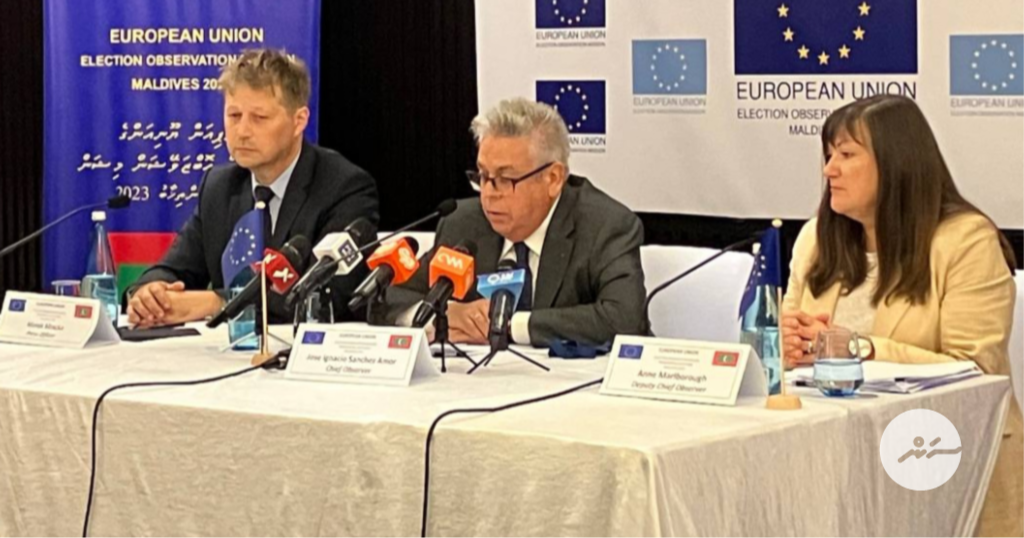 ރިޔާސީ އިންތިހާބުގެ މިނިވަންކަން ކަށަވަރު ކުރުމަށްޓަކައި، ކުރީގެ ރައީސް އަބްދުﷲ ޔާމީން ގެއަށް ބަދަލުކޮށްދެއްވުމަށް ކުރީގެ ރައީސް އަދި މަޖިލީހުގެ ރައީސް މުހައްމަދު ނަޝީދު ދެންނެވި ދެންނެވުމާމެދު، ކޮށްދެވޭނެ ކަމެއް ނެތް ކަމަށް ރިޔާސީ އިންތިޚާބު އޮބްޒާވް ކުރުމަށް ޔޫރަޕިއަން ޔޫނިއަނުން ފޮނުވި އޮބްޒަވޭޝަން މިޝަންގެ ޗީފް އޮބްޒާވަރު، ނާޗޯ ސަންޗޭޒް އަމޯރު ވިދާޅުވެއްޖެއެވެ.