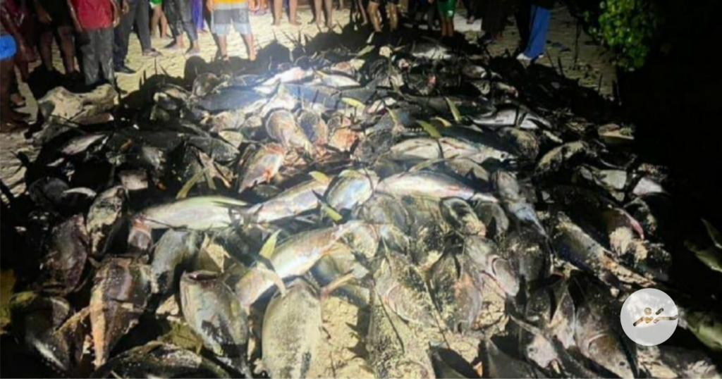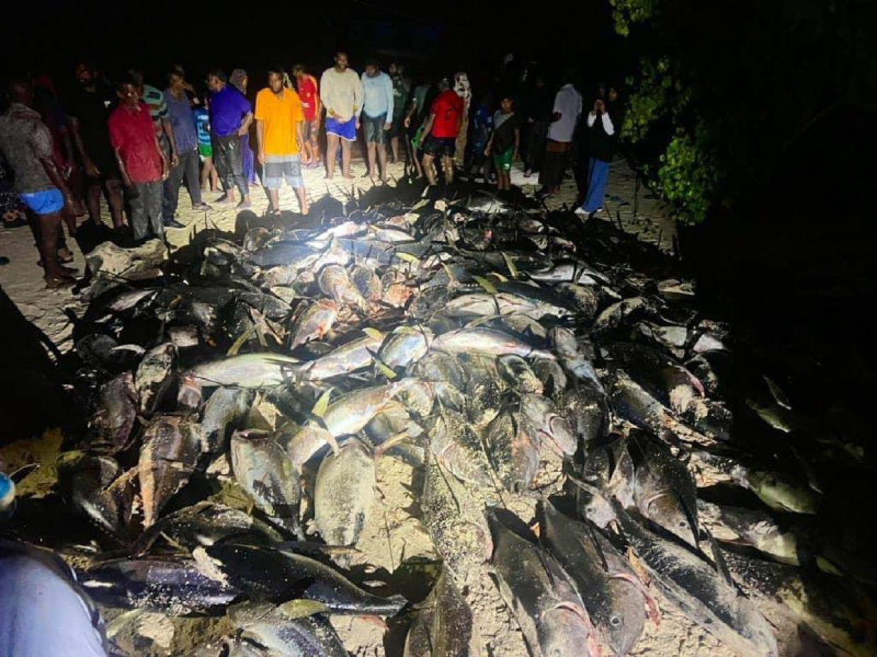 އެ ރަށުން "ސަން"އާ ވާހަކަ ދެއްކި މީހަކު ބުނި ގޮތުގައި، ގާތްގަނޑަކަށް 300އެއްހާ ކަންނެލި އެ ރަށުގެ ފަޅުތެރެއިން ހިފިއެވެ.