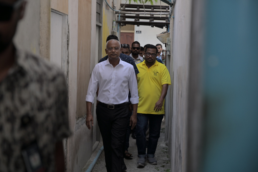 ރައީސް އިބްރާހިމް މުހައްމަދު ޞާލިޙް، ރިޔާސީ އިންތިޚާބުގެ ކެމްޕޭނަށް މާލޭގެ ގޭގެއަށް ޒިޔާރަތް ކުރައްވަނީ -- ފޮޓޯ/ އެމްޑީޕީ