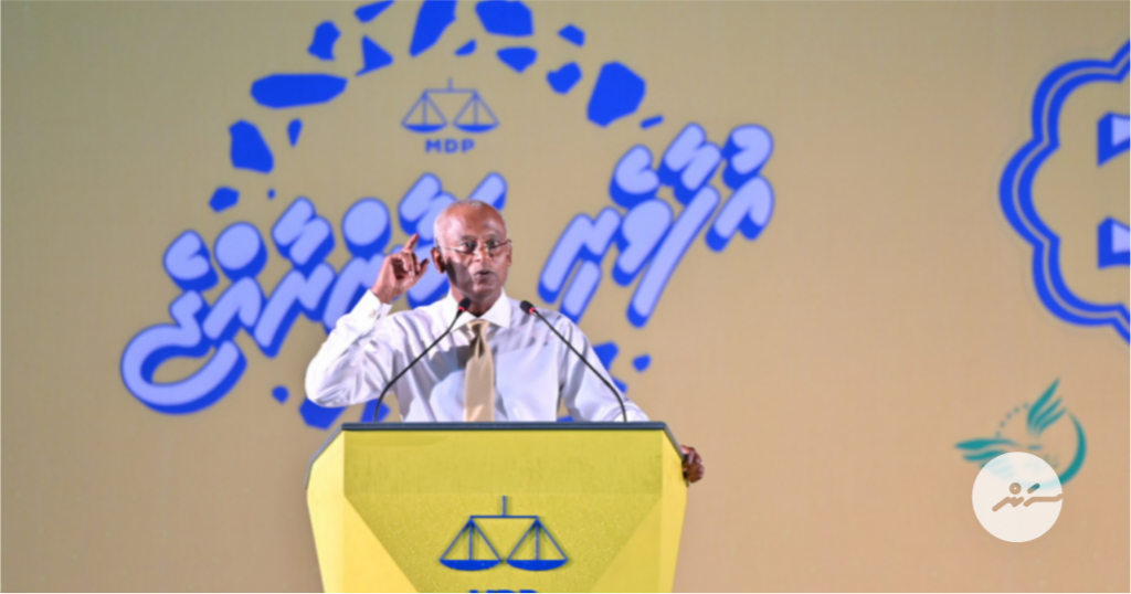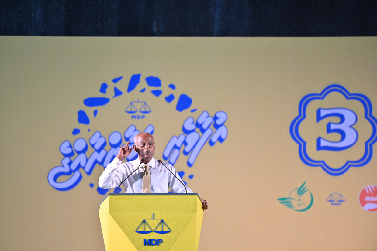 ރައީސް ތިނަދޫ ސިޓީގަައި ވާހަކަފުޅުދައްކަވަނީ -- ފޮޓޯ/ އެމްޑީޕީ