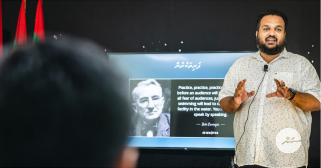 ދިވެހި ބަހުގެ އެކެޑަމީން އިންތިޒާމު ކޮށްގެން ބާއްވާ، ވާހަކަ ދެއްކުމުގެ ހުނަރު ދަސްކޮށްދޭ ކޯހުގެ ތެރެއިން -- ސަން ފޮޓޯ/ މާހިލް އާތިފް