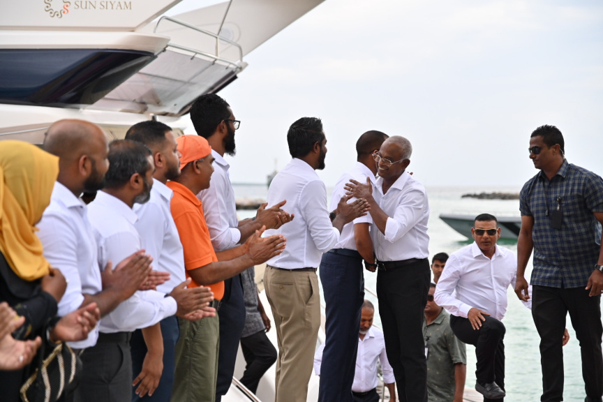 ރަައީސް ކުޅުދުއްފުއްޓަށް ވަޑައިގަތުމުން މެމްބަރު ޔާސިރު ރައީސަށް މަރުހަބާ ދަންނަވަނީ -- ފޮޓޯ/ އެމްޑީޕީ