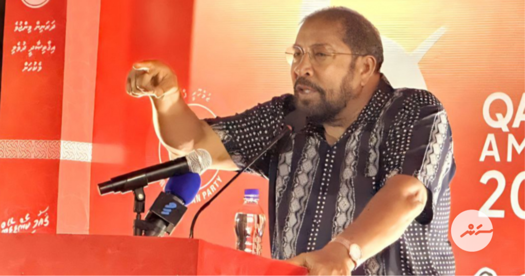 "ވެރިކަން ލިބިއްޖެ ނަމަ ރާއްޖޭގެ ހުރިހާ ކަންކޮޅުތަކެއްގައި މަސް ބާނާ ހުރިހާ އެންމެން ވެސް މަސް ވިއްކަން އައިސްގެން ކަލުބިލަ މަހުގެ މަސް ނުވިއްކާނެ 25 ރުފިޔާއަށް ވުރެ ދަށް އަގަކަށް. "އިންފެކްޓް" އަޅުގަނޑުމެން ގަންނާނީ 26 ރުފިޔާއަށް ކިލޯއެއް. އެ ކަން މިއަދަކު އަޅުގަނޑަކަށް ނުކުރެވޭނެ. އެއީ ކީއްވެ. އަޅުގަނޑަކީ ރައީސުލްޖުމްހޫރިއްޔާއެއް ނޫން،" އޭނާ ވިދާޅުވިއެވެ.