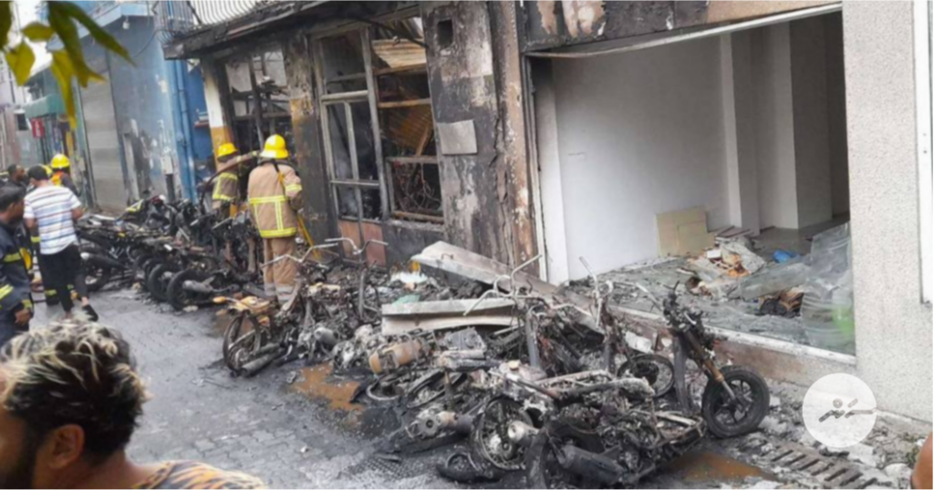 އަލިފާނުގެ ހާދިސާގައި "ވެގަ ޕޮއިންޓް" ފިހާރައިގެ ހުރިހާ މުދަލަކާއި، ކައިރީ ޕާކުކޮށްފައި ހުރި 15 ސައިކަލު އަނދައިފަ---