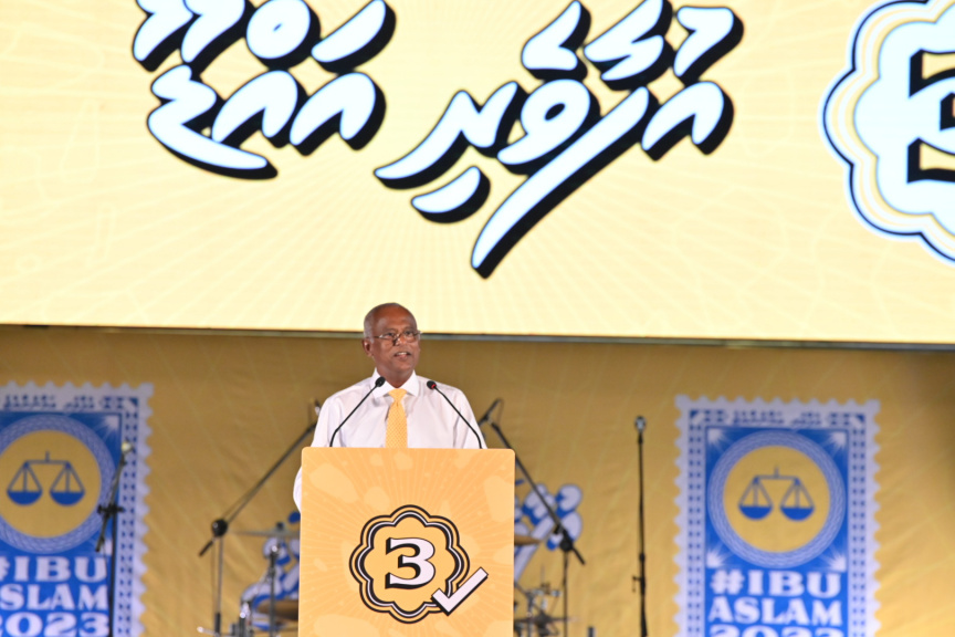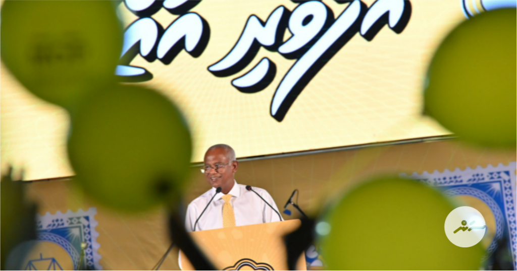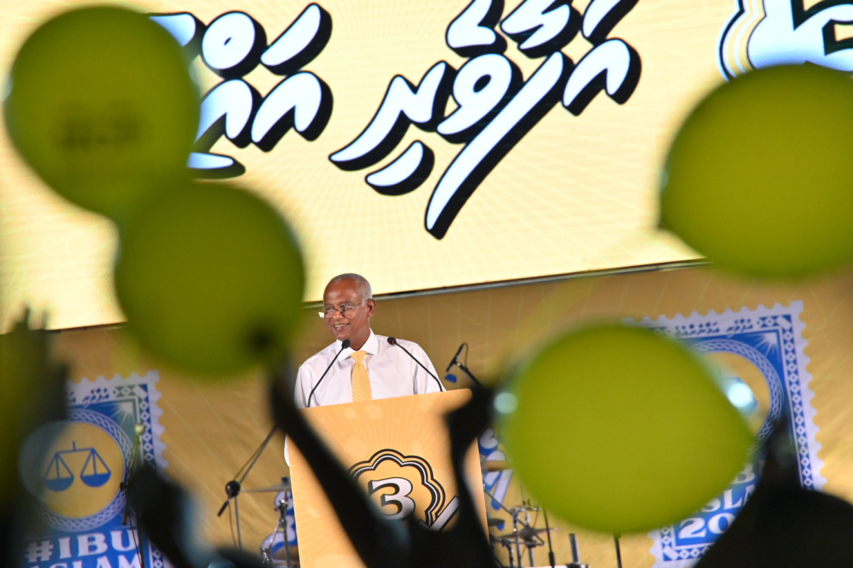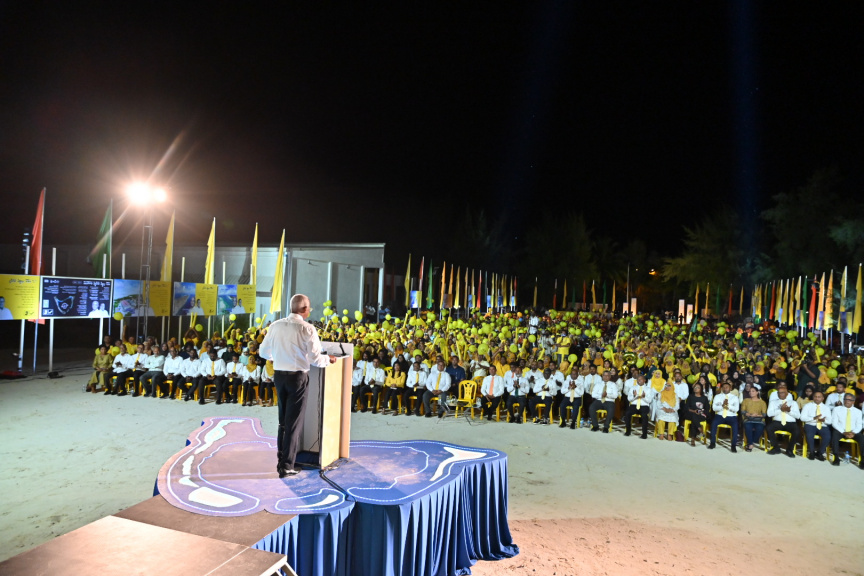 ރައީސް ޞާލިހް އައްޑޫގައި ވާހަކަފުޅުދައްކަވަނީ -- ފޮޓޯ/ އެމްޑީޕީ