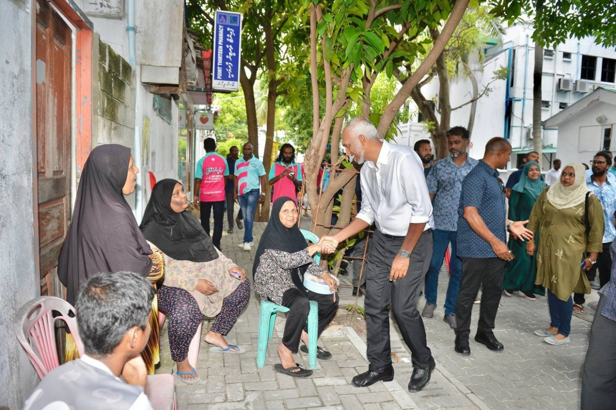 ވިލިމާލެއަށް މިއަދު ޑރ. މުއިއްޒު ވަޑައިގަތް އެ ރަށުގައި ދިރިއުޅޭ ރައްޔިތުންނާ ބައްދަލު ކުރައްވަނީ --- ފޮޓޯ: ޕީޕީއެމް