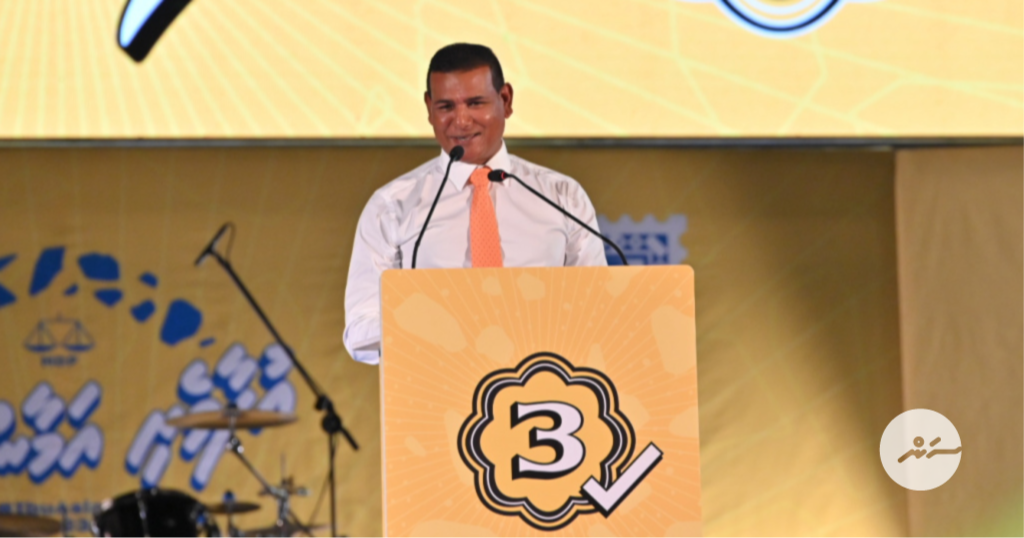"އަޅުގަނޑު ހަމަ ވަރަށް އިހްތިރާމާ އެއްކޮށް، ލޯތްބާއެކު މި ދަންނަވަނީ އިބްރާހިމް މުޙައްމަދު ޞާލިހު ތި ބޭފުޅުން 65 ޕަސެންޓުން ހޮވައިދީފިކަމަށްވަންޏާ އަޅުގަނޑު އިރާދަކުރެއްވިއްޔާ ސަން ސިޔާމް މުބާރާތް ތިޔަ ބޭފުޅުންނަށް ބާއްވައިދޭނަން،" ސިޔާމް ވިދާޅުވިއެވެ.