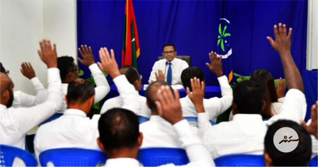 އެ ބައްދަލުވުމުގައި ބައިވެރިވި 51 މެންބަރުންގެ ތެރެއިން 35 މެންބަރަކު ވަނީ ޕީޕީއެމް ޕީއެންސީއާއެކު ކޯލިޝަން ހަދަން ވޯޓު ދީފައެވެ. އެމްޑީޕީގެ ރިޔާސީ ކެންޑިޑޭޓް ރައީސް އިބްރާހީމް މުހައްމަދު ޞާލިހާއެކު ކޯލިޝަން ހަދަން އެއްވެސް މެންބަރަކު ވޯޓު ދީފައިނުވާއިރު، އެއްވެސް ބަޔަކާ ކޯލިޝަން ނަހަދަން ހަ މެންބަރަކު ވޯޓު ދީފައި ވެއެވެ. އަދި އެއްވެސް ކޮޅަކަށް ވޯޓު ނުދޭ 10 މެންބަރަކު އެބަތިއްބެވެ.