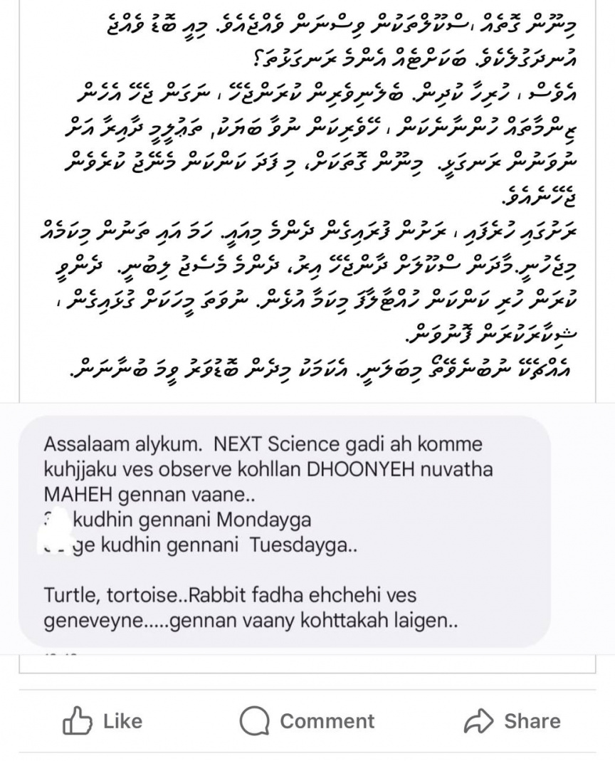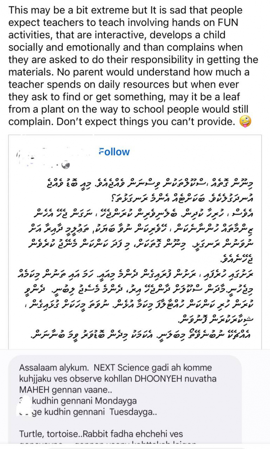 ފޭސްބުކްގައި މިފަހުން ދައުރުވި ޕޯސްޓުގައި ގިނަ އަދަދެއްގެ ޓީޗަރުން ވެސް ވަނީ އެމީހުންގެ ޚިޔާލު ފާޅުކޮށްފައެވެ.