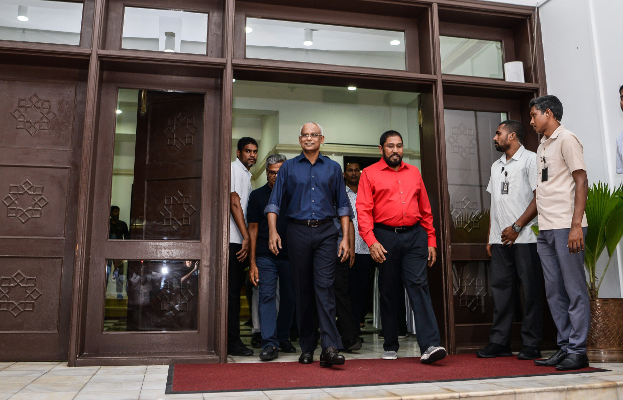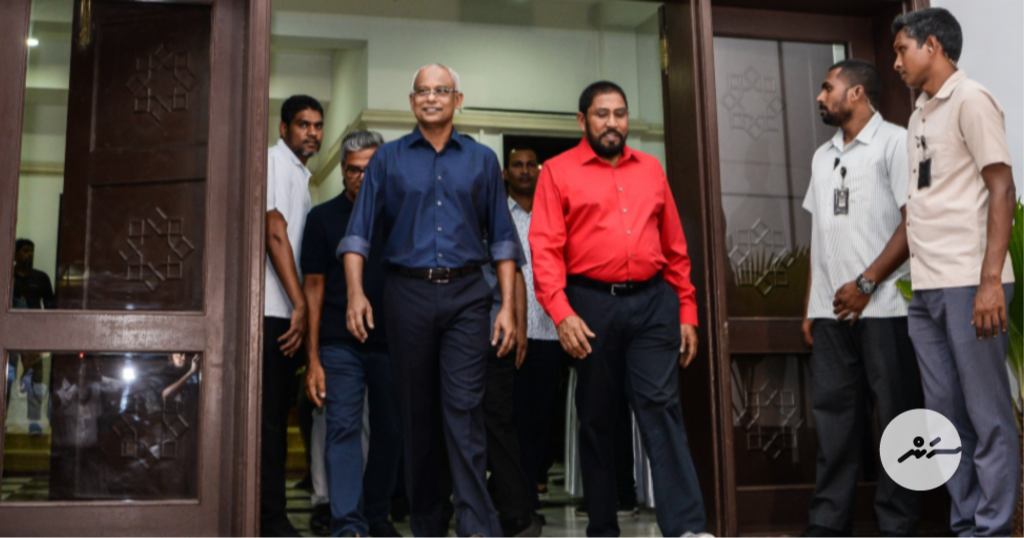 ކޯލިޝަން ހެދުމުގެ މަޝްވަރާތަކަށް މިއަދު ރައީސް، ގާސިމާ ބައްދަލުކުރައްވާއިރު، އިއްޔެ ޕީޕީއެމް/ޕީއެންސީގެ އިސް ވަފުދެއް ވެސް ވަނީ ކޯލިޝަން ހެދުމުގެ މަޝްވަރާއަށް ގާސިމާ ބައްދަލުކުރައްވަން ސަން އައިލެންޑަށް ވަޑައިގެންފައެވެ.